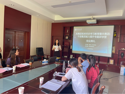 之后,学员代表周渝希用“奋斗”“传承”“发展”为关键词分享了此次培训的感悟;郭晶围绕“三点认识”“三点收获”总结了本次培训自身所获的成长;仇寒从对共青团工作的认识,实践育人、新媒体宣传工作等方面的感悟进行了交流分享。学员们普遍认为,此次团课培训设计精妙、内容丰富、形式多样,课程安排具有很强的针对性、指导性、实践性,通过本次培训,更新了观念,拓展了视野、丰富了知识,收获了友谊,大家纷纷表示要把学习到的好经验、好做法、好模式带回去、用起来,为学校团学工作做出新的更大贡献。