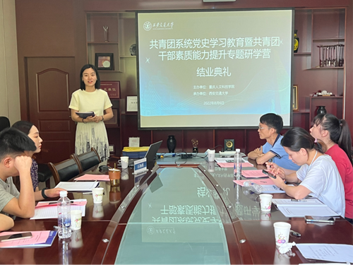 步履不停,一路成长。经过6天的集中培训,2022年BEAT365英国官网共青团干部党史学习暨素质能力提升专题研学营顺利完成各项学习任务圆满结业。8月6日上午,在西安交通大学继续教育学院综合楼会议室举行了结业典礼。学校团委书记韩亮、研学营班主任许一鹭及全体学员参加,典礼由学校团委副书记帅婷婷主持。