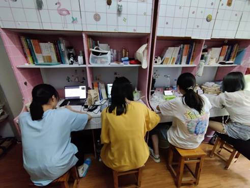 学生在宿舍线上学习
