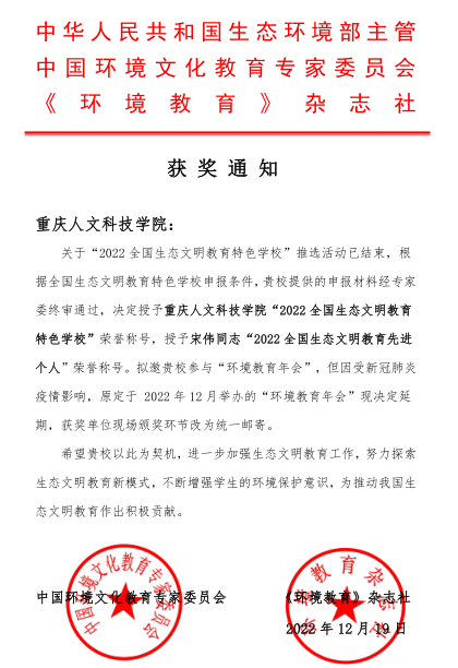 【喜报】学校荣获2022全国生态文明教育特色学校”称号