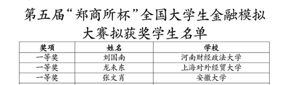 12月16日,由中国证监会期货监管部、投资者保护局、团委指导,郑州商品交易所联合中国期货业协会举办的第五届“郑商所杯”全国大学生金融模拟交易大赛(以下简称第五届“郑商所杯”)落下帷幕。学校在组织、培训和指导高校大学生的工作中表现突出,获得“优秀合作高校奖”荣誉称号,其中工商学院陈慧玲、朱琳等5位同学获鼓励奖。