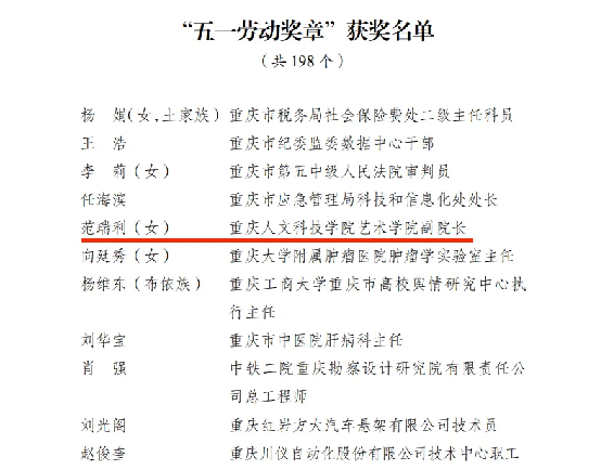 【喜报】学校教师范瑞利荣获重庆五一劳动奖章