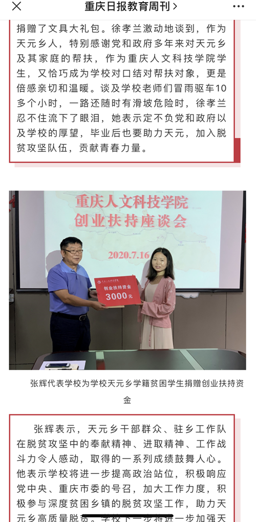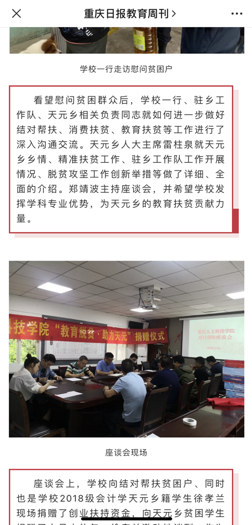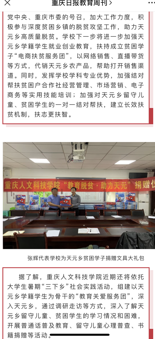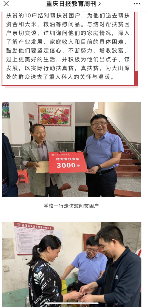 重庆日报:千里赴天元,扶贫暖人心——BEAT365英国官网领导带队赴天元乡开展帮扶慰问活动