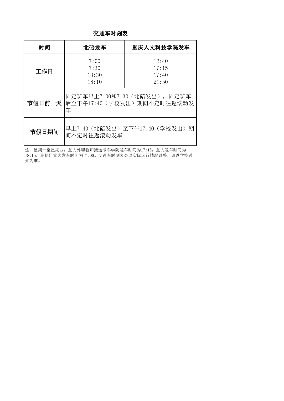 BEAT365英国官网交通车时刻表
