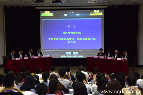 建筑与设计学院代表队持“重庆建设内陆开放高地,优势在传统产业升级”的正方观点,从重庆传统产业升级的含义以及重庆传统产业雄厚的基础两方面来论述辩题;文学与新闻传播学院代表持“重庆建设内陆开放高地,优势在新兴产业开发”的反方观点,从新兴产业的发展前景和重庆的发展两个方面层层剖析。在攻辩与自由辩论环节,正反方辩手针锋相对,互相质询,寻找对方的破绽,以证明自己的观点,辩论十分激烈。最终,文学与新闻传播学院代表队以84.04分赢得了冠军。