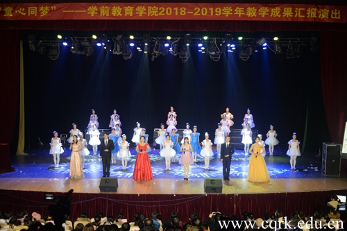 12月13日,学前教育学院在音乐厅举办了2018-2019学年教学成果汇报演出。校领导程荣尧、杨霄、舒卫华,学前教育学院党政领导以及各二级学院师生代表参加晚会。