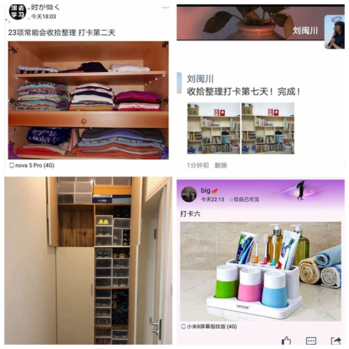 在“会收拾整理”活动中,同学们展示了自己将家里各类场所进行精心的收拾、整理、布置的照片,收拾整理经验的总结,也分享了自己热爱生活、崇尚美好的生活理念。