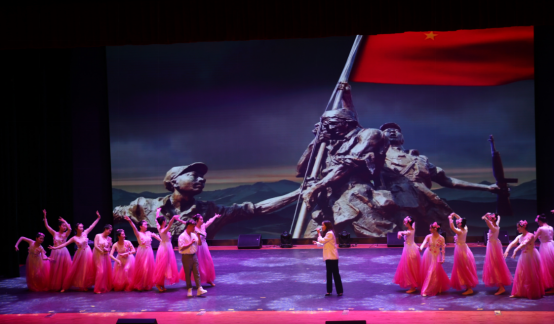 随后,由教师魏维、宋爽、沈新菲和舞蹈学专业学生带来的歌舞《唱支山歌给党听》《光荣与梦想》抒发了师生感党恩、颂党情、听党话、跟党走的决心和信心。播音与主持艺术专业同学们带来的《觉醒年代》配音表演,让我们感受到了榜样的力量,更加坚定理想信念,争做有为青年。
