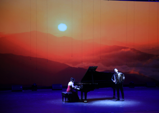 随后教师王宁带来了二胡原创曲目——《遵义红》,用悠扬的旋律向我们讲述了一段可歌可泣的宏伟历史,展示了共产党员无惧无畏、勇往直前的精神。教师杨娜带来的歌曲《挑担茶叶上北京》,教师李晓莹、郑磊演绎的钢琴与手风琴二重奏《我的祖国》,都展现了一代代勤劳的中国人民经过不懈努力创造出的璀璨文明。