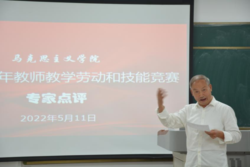 在点评环节,评委代表吴文华教授充分肯定了参赛教师的理论功底和教学实操能力,认为老师们在教学设计和课件制作上有特色,理论联系实际恰当,讲解生动、教态自然、声音洪亮,教学重点突出,课堂互动好。同时,他也指出,青年教师刚上讲台,细节需要关注,经验需要总结,语言的抑扬顿挫、板书和PPT展示相得益彰可以助力教学效果的提升。
