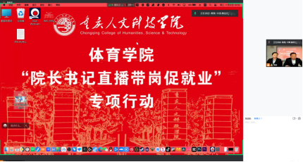 为顺应后疫情时期就业创业工作要求,认真贯彻落实党中央、国务院关于高校毕业生就业工作的决策部署,扎实做好院长书记访企拓岗促就业专项行动,搭建校企双方合作交流平台,为毕业生提供更多的就业机会,11月30日上午体育学院“院长书记直播带岗促就业”专项行动正式开启。体育学院院长兼党总支书记肖宇翔、副书记黄微亲临直播间化身“主播”,以“直播带岗”的形式向毕业生推荐就业岗位。
