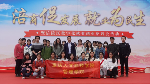 为贯彻落实党中央、国务院关于就业工作决策部署和市委、市政府稳就业工作要求,切实落实推进农民工、就业困难人员、未就业大学生就业创业工作,3月11日,由重庆市涪陵区委非公工委、共青团涪陵区委、涪陵区工商联(总商会)主办的“涪商促发展、就业为民生”数字化就业创业招聘会活动在涪陵万达广场隆重举行,学校作为主要协办单位之一,人力资源管理系30多名师生参与了此次招聘活动。